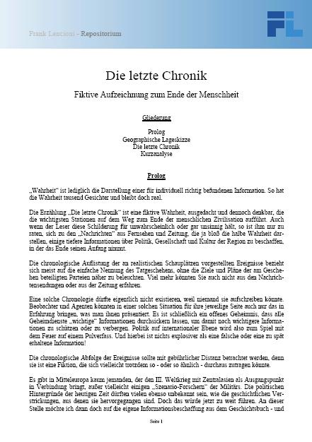 Die letzte Chronik Fiktive Aufzeichnung über das Ende der Menschheit