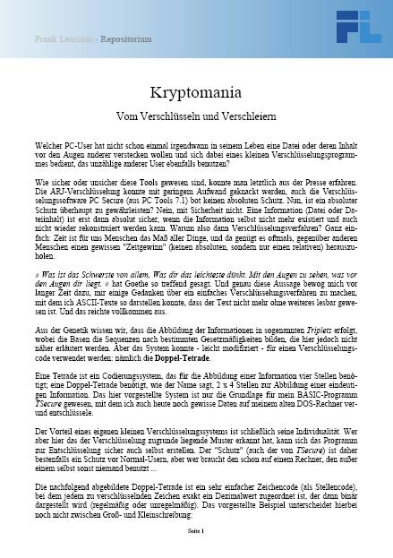 Das Thema Kryptographie hat es mir schon irgendwie angetan. In dieser kurzen Beschreibung stelle ich Ihnen nur die Idee vor. Den kleinen Videotrailer dazu können Sie sich auf meinem aktuellen YouTube-Kanal anschauen ...