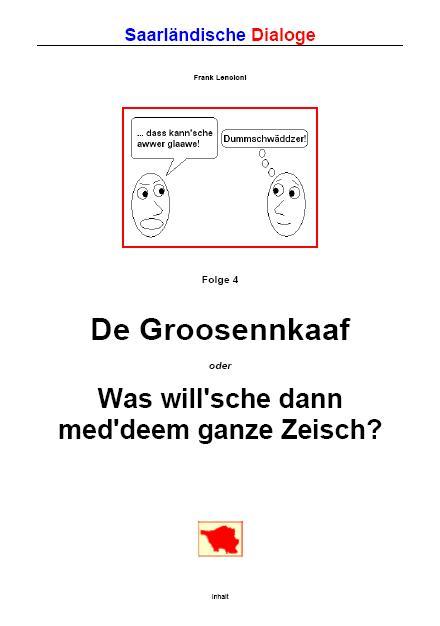 Im Saarland liebt und lebt man auch in heutiger Zeit noch eine weitgehende Selbstversorgung. Doch manche Dinge, die eben nicht im Garten wachsen, müssen dann und wann eingekauft werden. De Groosennkaaf ist meist die aus Sicht des Saarländers ökonomischste Form der Vorratsbeschaffung mit ohnehin nicht frischen Sachen.