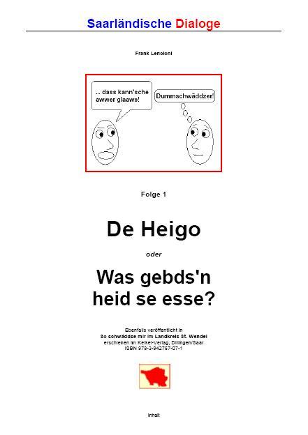 De Heigo ist die erste Episode aus meiner kleinen Reihe mit saarländischen Dialogen gewesen. Diese Episode ist auch im Buch So schwäddse mir im Landkreis St. Wendel veröffentlicht worden (Kelkel-Verlag, Dillingen, ISBN: 978-3-942767-07-1).
