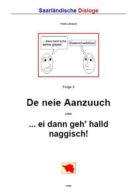 Wenn wir Saarländer einkaufen gehen, dann läuft das in aller Regel nicht immer ganz ohne Diskussionen ab, vor allem dann nicht, wenn man sich für Festivitäten einkleinden muss, denen man lieber fernbleiben möchte. So ist auch De neie Aanzuuch ein Kleidungsstück, das man als Saarländer nur im Notfall trägt ...