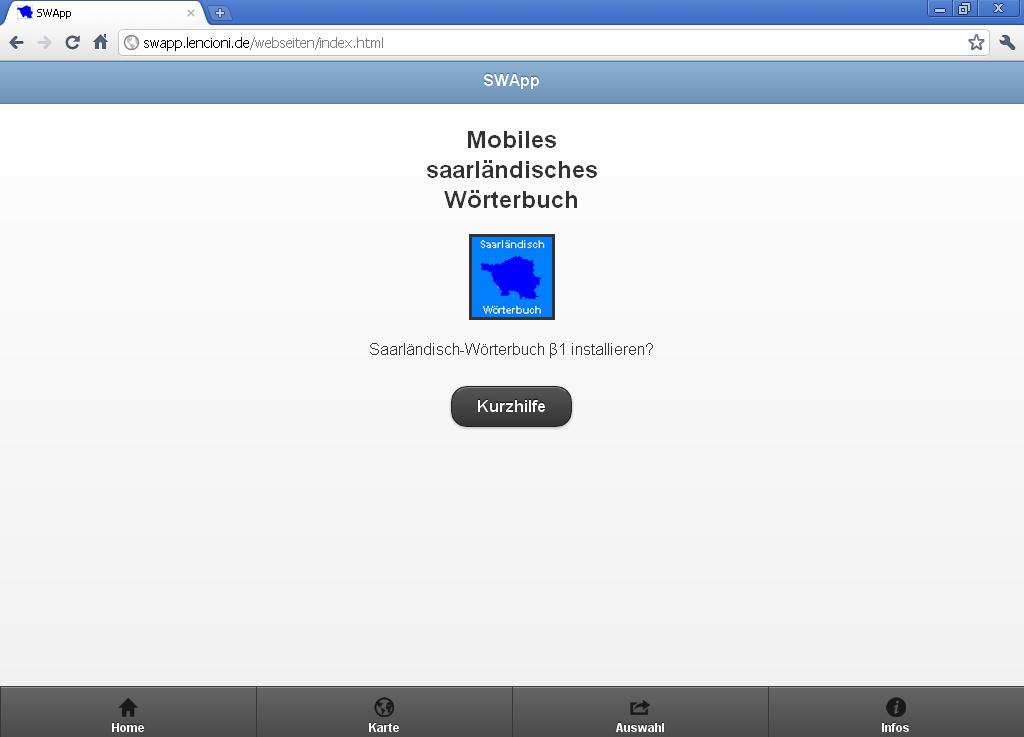 Auch diese Seite ist voll funktionsfähig, aber leer - und daher zunächst auch offline.