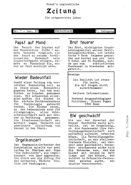 Frank's unglaubliche Zeitung F.U.Z. - Ein Stück Zeitgeschichte